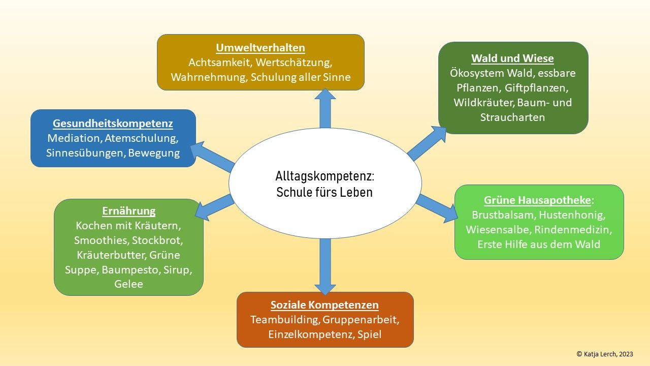 Neben meinen regulären Kursen habe ich auch ein Programm speziell für das Projekt „Alltagskompetenz – Schule fürs Leben“ an bayrischen Schulen entwickelt. Dabei handelt es sich um eine Projektwoche, bei der sowohl Grundschüler als auch Kinder in weiterführenden Schulen u. a. an die Handlungsfelder Gesundheit, Ernährung und Umweltverhalten herangeführt werden sollen.